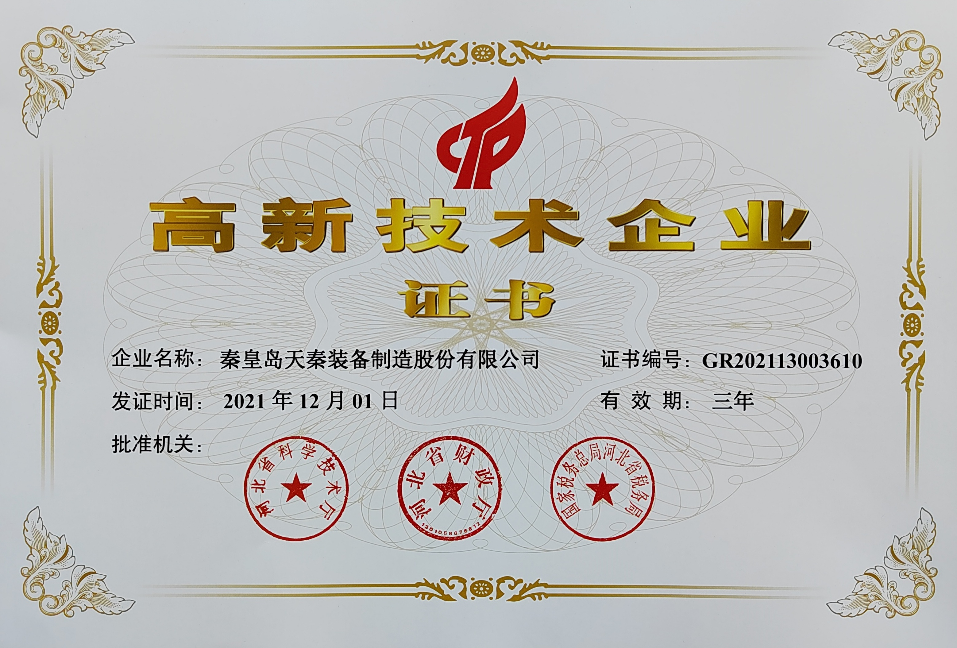 - 秦皇島天秦裝備制造股份有限公司創(chuàng)立于1996年,總部位于河北省秦皇島市經(jīng)濟技術(shù)開發(fā)區(qū),秦皇島廠區(qū)占地4萬平方米,擁有3萬平方米的標(biāo)準(zhǔn)廠房、辦公樓和工程技術(shù)研發(fā)中心;分部天津廠區(qū)位于天津市靜海經(jīng)濟開發(fā)區(qū),占地2萬平方米,擁有1.6萬平方米標(biāo)準(zhǔn)廠房。 公司通過了GB/T 19001質(zhì)量管理體系及GB/T 24001環(huán)境管理體系認(rèn)證,是國家高新技術(shù)企業(yè)、河北省軍民融合產(chǎn)學(xué)研用創(chuàng)建基地,建有省級院士工作站。